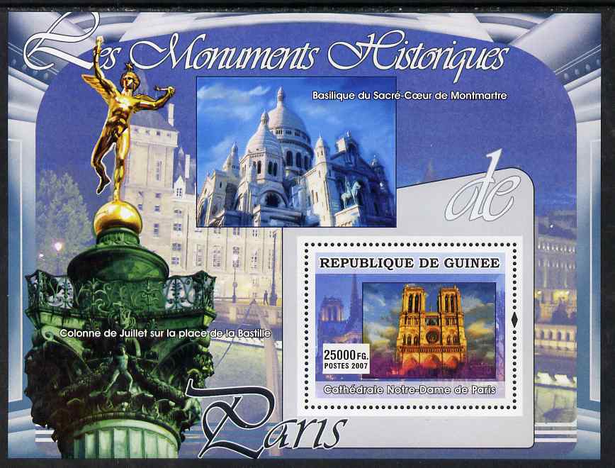 Guinea - Conakry 2007 Monuments of Paris (Notre Dame) perf souvenir sheet unmounted mint