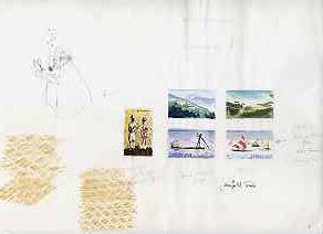 Jamaica 1960's original artwork on thin paper by Jennifer Toombs for Tourism issue comprising 5 stamp size colour sketches, signed Jennifer M Toombs