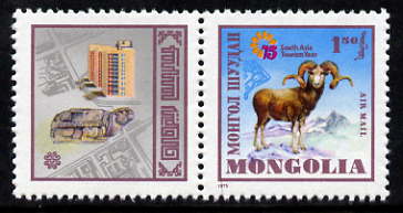 Mongolia 1975 South Asia Tourist Year se-tenant pair (stamp & label) unmounted mint, SG 925