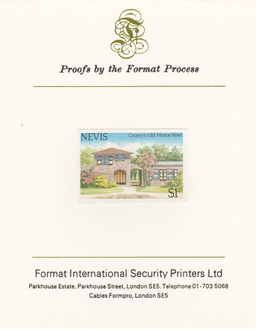 Nevis 1985 Tourism (2nd series) $1.20 (Croney's Old Manor Hotel) imperf proof mounted on Format International proof card as SG 245