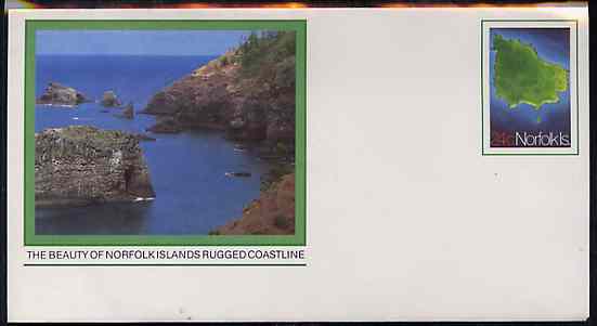 Norfolk Island 1982c 'Island Life' 24c pre-stamped p/stat envelope featuring Map and Coastline Scene