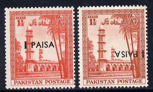 Pakistan 1961 surcharged 1 Paisa on 1.5a red Nwith surch inverted plus normal both unmounted mint SG 122var
