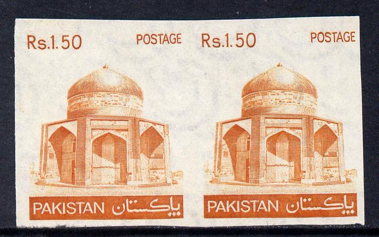 Pakistan 1978-81 Mausoleum 1r50 imperf pair unmounted mint, SG 476a