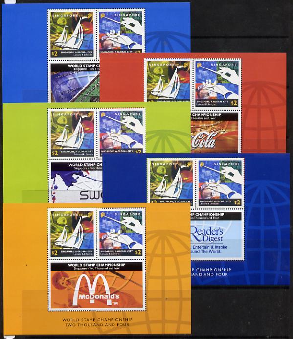 Singapore 2002 Singapore - A Global City 1st series set of 5 m/sheets each containing set of 2 values plus different double stamp-sized labels unmounted mint as SG 1259-60