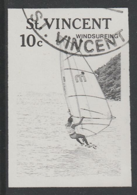 St Vincent 1988 Tourism 10c Windsurfing imperf proof in black only, fine used with part St Vincent cancellation, produced for a promotion. Ex Format International archives (as SG 1133)
