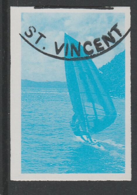 St Vincent 1988 Tourism 10c Windsurfing imperf proof in cyan only, fine used with part St Vincent cancellation, produced for a promotion. Ex Format International archives (as SG 1133)