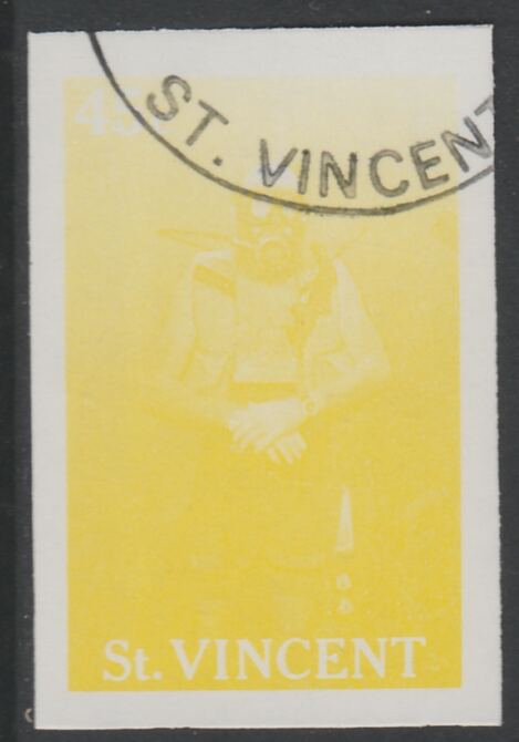 St Vincent 1988 Tourism 45c Scuba Diving imperf proof in yellow only, fine used with part St Vincent cancellation, produced for a promotion. Ex Format International archives (as SG 1134)