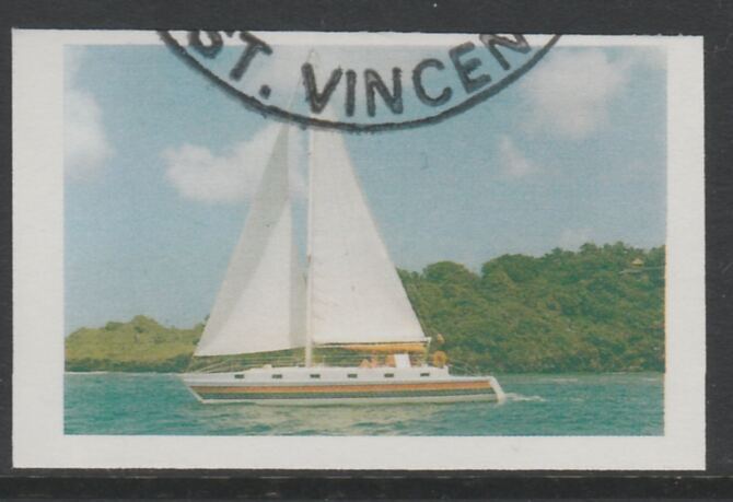 St Vincent 1988 Tourism $5 Cruising Yacht imperf proof in 3 colours only (magenta, cyan & yellow), fine used with part St Vincent cancellation, produced for a promotion. Ex Format International archives (as SG 1136)
