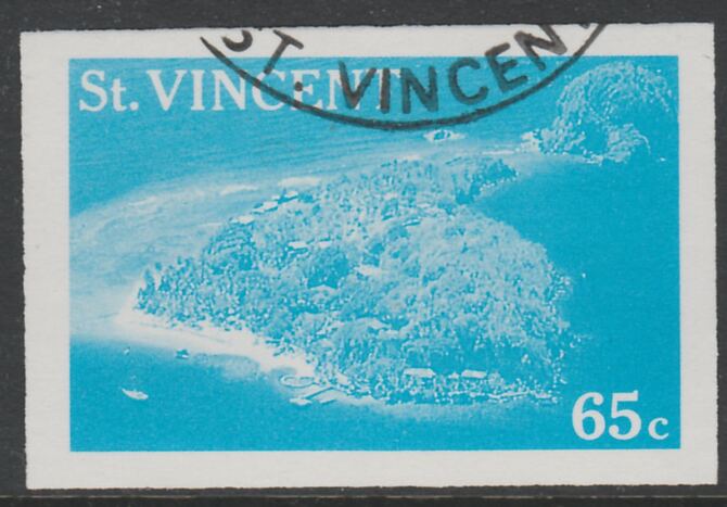 St Vincent 1988 Tourism 65c Aerial View of Young Island imperf proof in cyan only, fine used with part St Vincent cancellation, produced for a promotion. Ex Format International archives (as SG 1135)
