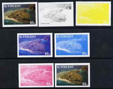 St Vincent 1988 Tourism 65c Aerial View of Young Island - the set of 7 imperf progressive proofs comprising the 4 individual colours plus 2, 3 & all 4-colour composites, unmounted mint, as SG 1135