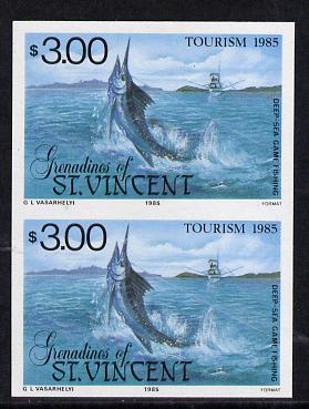 St Vincent - Grenadines 1985 Tourism Watersports $3 (Deep Sea Game Fishing) imperf pair unmounted mint (SG 389var)