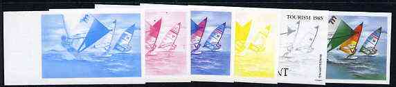 St Vincent - Grenadines 1985 Tourism Watersports 35c (Windsurfing) set of 6 imperf progressive proofs comprising the 4 individual colours plus 2 & 3 colour composites (as SG 386) unmounted mint