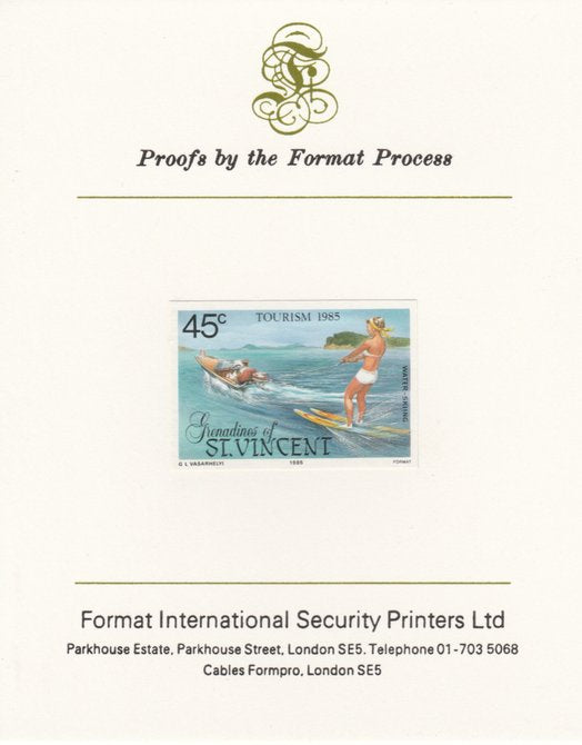 St Vincent - Grenadines 1985 Tourism Watersports 45c (Water Skiing) imperf proof mounted on Format International proof card as SG 387