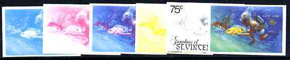 St Vincent - Grenadines 1985 Tourism Watersports 75c (Scuba Diving) set of 6 imperf progressive proofs comprising the 4 individual colours plus 2 & 3 colour composites (as SG 388) unmounted mint