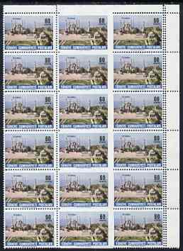 Turkey 1965 Istanbul 60k corner block of 28 (4 x 7) with a superb perforation jum resulting in double perfs on 3 sides on column 4 and imperf on 3 sides on column 3, as SG 2092, mounted in margins otherwise mainly fine