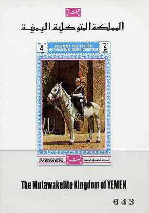 Yemen - Royalist 1970 'Philympia 70' Stamp Exhibition 4B imperf m/sheet showing Horse Guard unmounted mint (as Mi 1020)