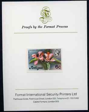 Antigua 1976 Orchid Tree 6c (with imprint) imperf proof mounted on Format International proof card (as SG 475B)