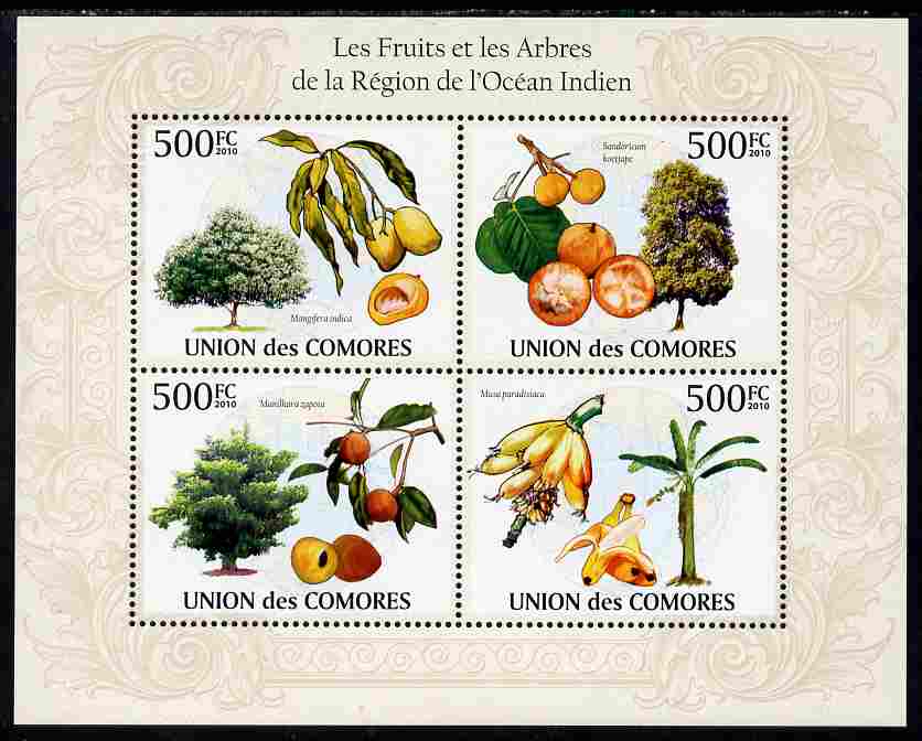 Comoro Islands 2010 Fruits & Trees from the Indian Ocean Region perf sheetlet containing 4 values unmounted mint, Michel 2661-64