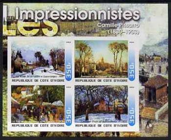 Ivory Coast 2003 Art of the Impressionists - Paintings by Camille Pissarro imperf sheetlet containing 4 values unmounted mint