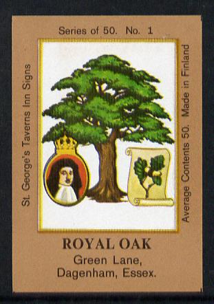 Match Box Labels - Royal Oak (No.1 from a series of 50 Pub signs) light brown background, very fine unused condition (St George's Taverns)