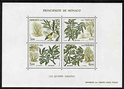 Monaco 1988 Seasons of the Olive Tree m/sheet containing set of 4 unmounted mint, SG MS 1897, Mi BL 41