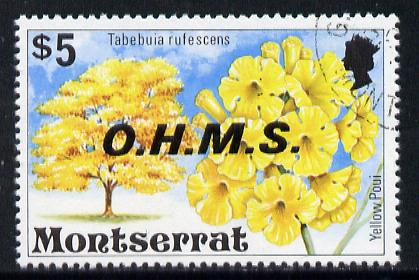 Montserrat 1976 Official $5 Yellow Poui Tree def opt'd OHMS with wmk sideways inverted (SG O15Ei) superb cds used*
