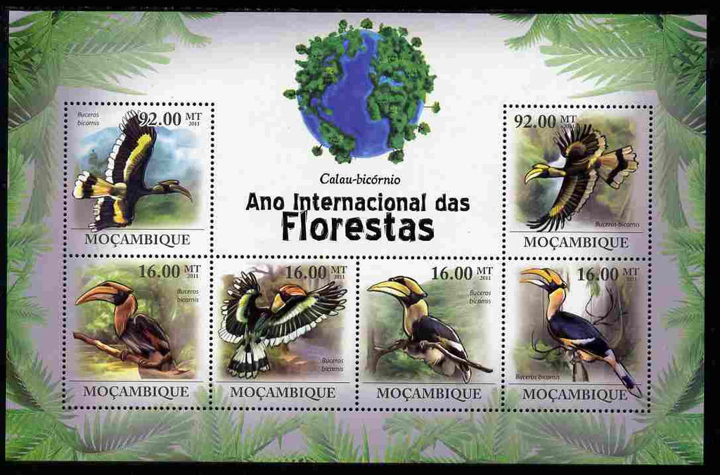 Mozambique 2011 International Year of Forests - Great Hornbill perf sheetlet containing 6 values unmounted mint