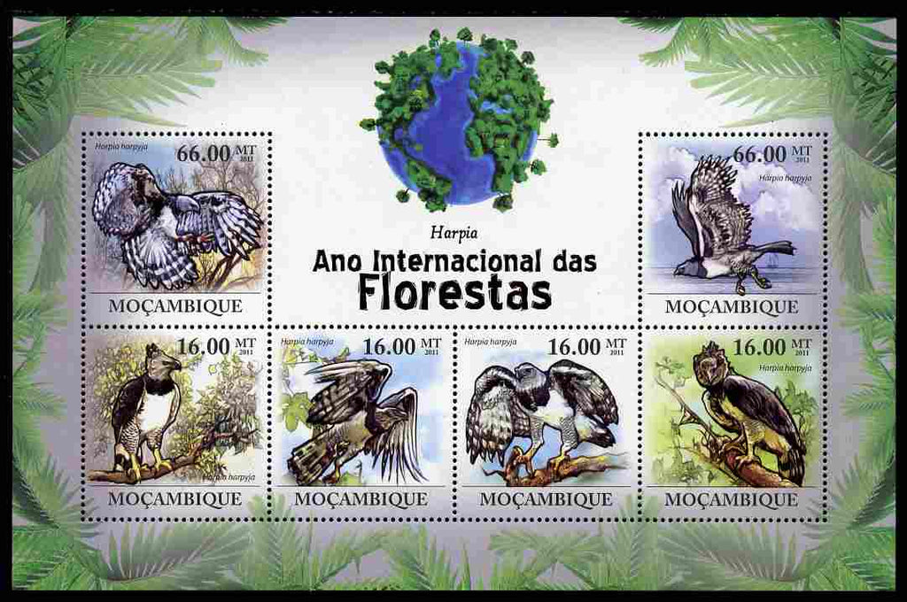 Mozambique 2011 International Year of Forests - Harpy Eagle perf sheetlet containing 6 values unmounted mint