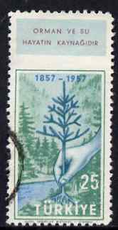 Turkey 1957 Forestry 25k imperf between stamp and label fine used, as SG 1687