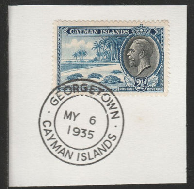 Cayman Islands 1935 KG5 Pictorial 2.5d Hawksbill Turtles (SG101) on piece with full strike of Madame Joseph forged postmark type 114 £7.50