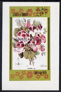 Oman 1973 United Nations opt'd on 1972 Flowers (50b Pelangonii) imperf souvenir sheet, unmounted mint