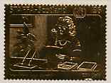 Staffa 1976 United Nations - International Labour Organisation £6 value (showing Secretary on Telephone) perf label embossed in 23 carat gold foil (Rosen #384)