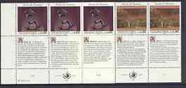 United Nations (Geneva) 1992 Declaration of Human Rights (4th series) set of 2 plus 2 labels (Oath of Tennis Court & Rocking Chair) each in blocks of 6 showing labels in 3 languages unmounted mint, SG G224-25