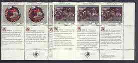United Nations (NY) 1991 Declaration of Human Rights (3rd series) set of 2 plus 2 labels (Last of England & Emigration) each in blocks of 6 showing labels in 3 languages unmounted mint, SG 609-10