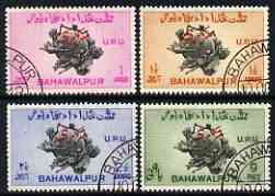 Bahawalpur 1949 KG6 75th Anniversary of Universal Postal Union set of 4 with red Arabic 'Official' overprint fine cds used, SG O28-31*
