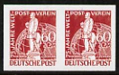 Germany - West Berlin 1949 75th Anniversary of Universal Postal Union 60pf lake-brown,'Maryland' imperf pair 'unused' forgery, as SG B58 - the word Forgery is either handstamped or printed on the back and comes on a presentation c……Details Below