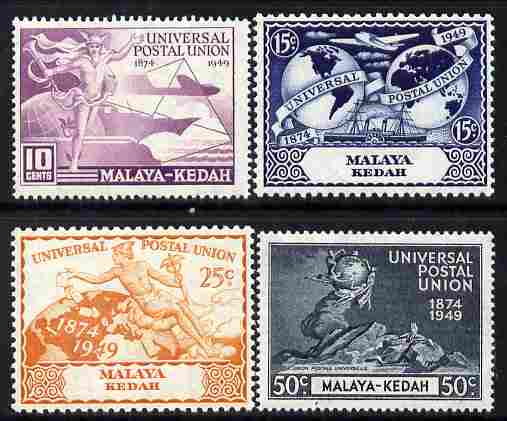 Malaya - Kedah 1949 KG6 75th Anniversary of Universal Postal Union set of 4 mounted mint, SG 72-75