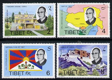 Tibet 1974 Centenary of Universal Postal Union set of 4 (Map, Temple, Flag) unlisted by SG, unmounted mint