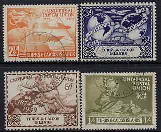 Turks & Caicos Islands 1949 KG6 75th Anniversary of Universal Postal Union set of 4 cds used, SG 217-20