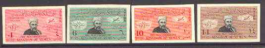 Yemen - kingdom 1949 Universal Postal Union Anniversary Airmail imperf set of 4 showing King Ahmed, mounted postman & Mail plane