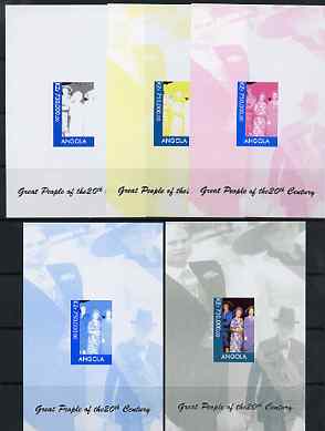 Angola 1999 Great People of the 20th Century - Queen Mother & Princess Diana souvenir sheet (Edward, Sophie & Churchill in background) - the set of 5 imperf progressive proofs comprising various 2-colour combinations plus all 4-colour composite, unmounted mint