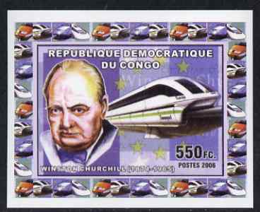 Congo 2006 Statesmen & Trains #2 - Churchill & Modern Train individual imperf deluxe sheet unmounted mint. Note this item is privately produced and is offered purely on its thematic appeal