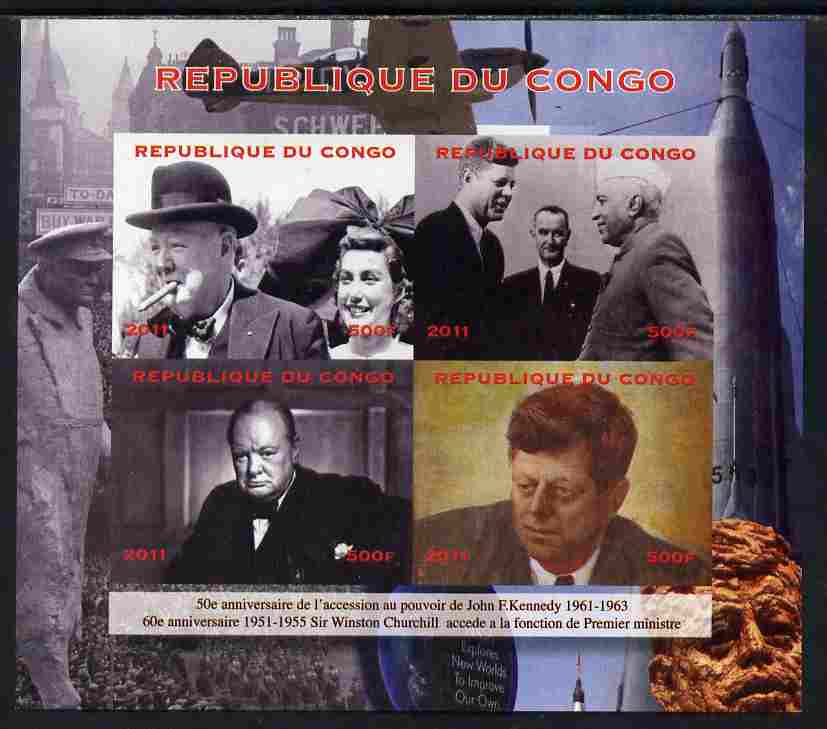 Congo 2012 Churchill & Kennedy imperf sheetlet containing 4 values unmounted mint. Note this item is privately produced and is offered purely on its thematic appeal, it has no postal validity