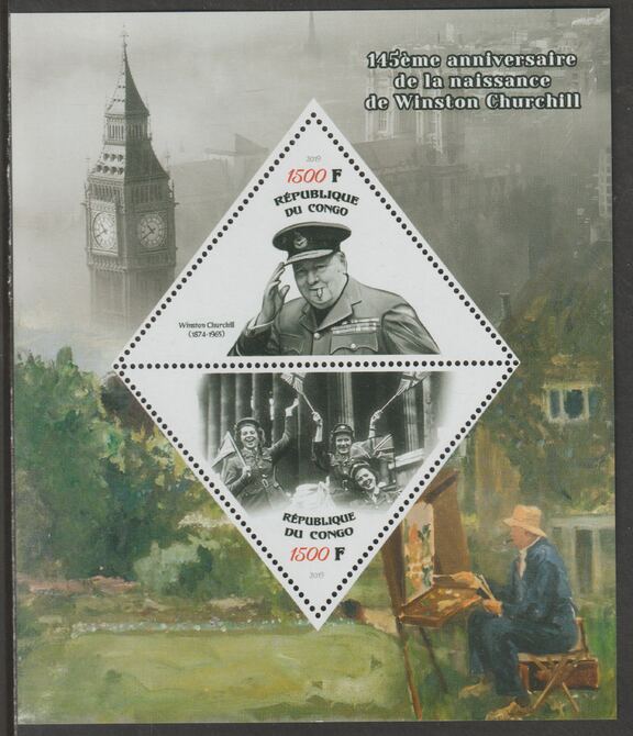 Congo 2019 Winston Churchill 145th Birth Anniversary perf sheet containing two triangular values unmounted mint