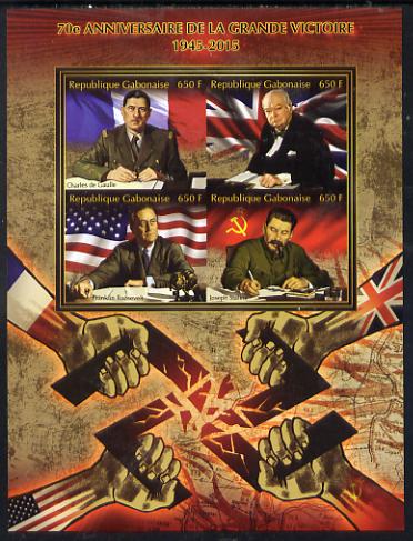 Gabon 2015 70th Anniversary of End of Second World War large imperf sheet containing 4 values unmounted mint