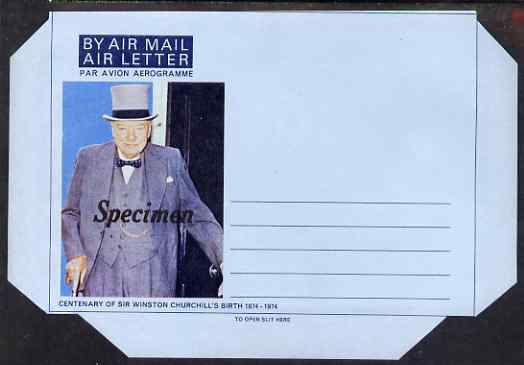 Great Britain 1974 Churchill Centenary Airletter form without inscription overprinted SPECIMEN, folded on 'fold lines' otherwise pristine