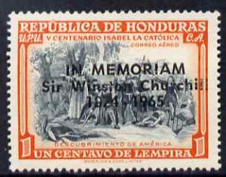 Honduras 1965 Churchill Commemoration opt on 1c grey & red-orange unmounted mint SG 671