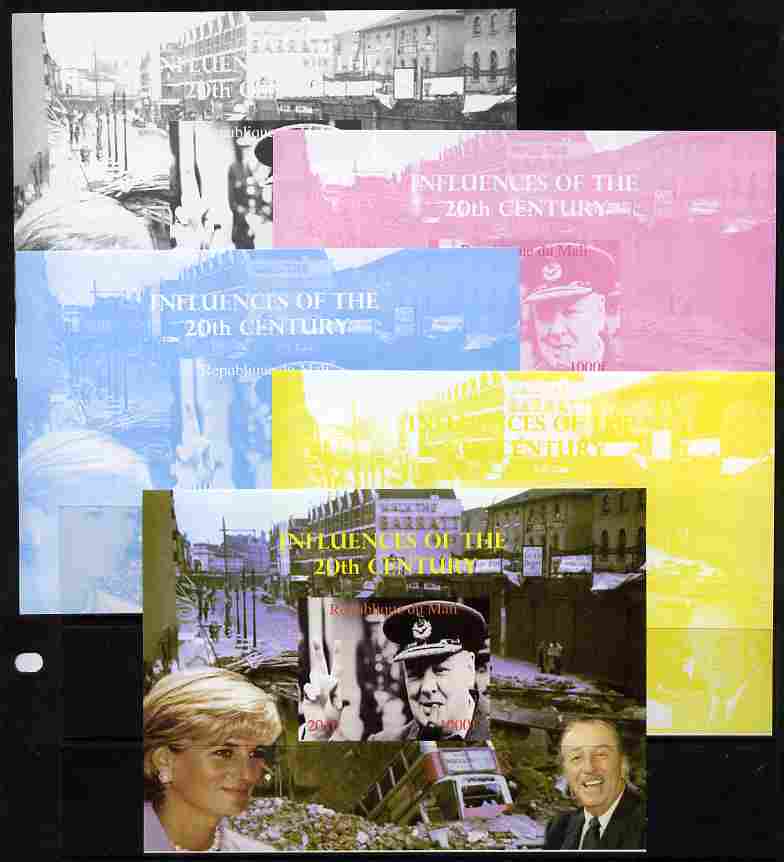 Mali 2010 Influences of the 20th Century #01 (Churchill, Diana & Disney) s/sheet - the set of 5 imperf progressive proofs comprising the 4 individual colours plus all 4-colour composite, unmounted mint