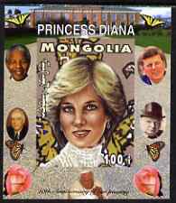 Mongolia 2007 Tenth Death Anniversary of Princess Diana 100f imperf m/sheet #03 unmounted mint (Churchill, Kennedy, Mandela, Roosevelt & Butterflies in background)