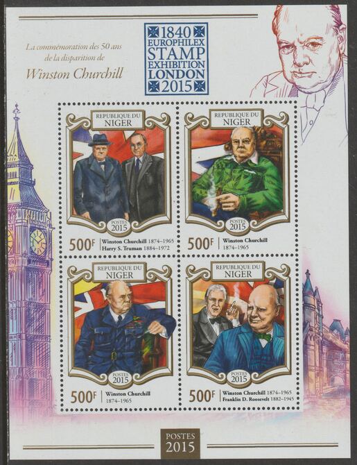 Niger Republic 2015 Europhilex Stamp Exhibition - Churchill,perf sheetlet containing 4 values unmounted mint